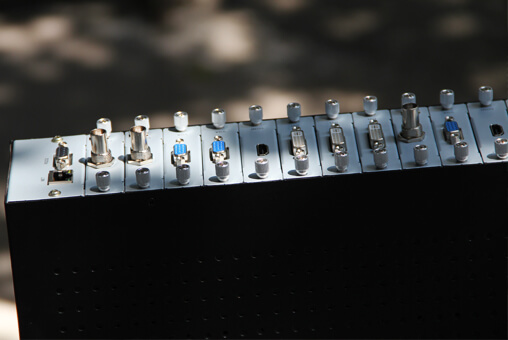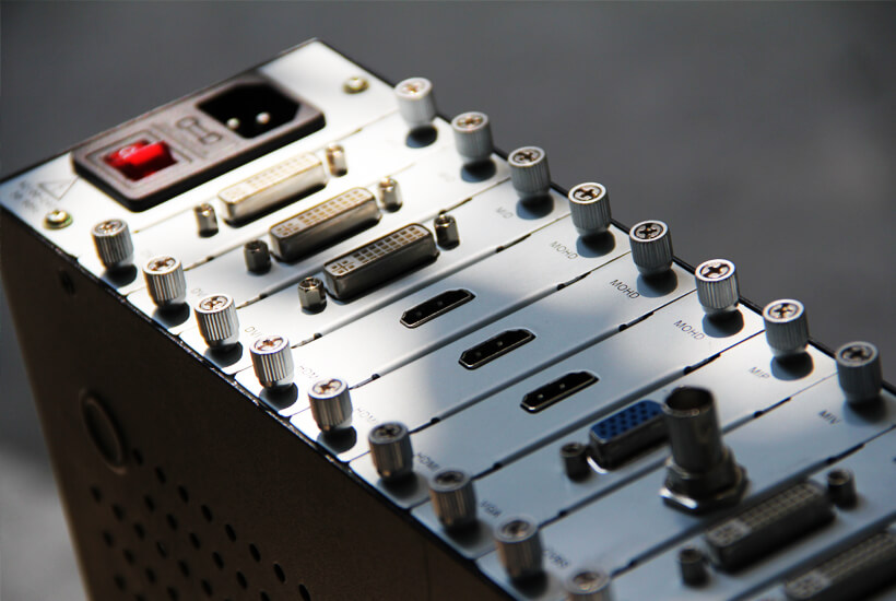 伯奧克新一代研發(fā)生產(chǎn)的多個模擬和數(shù)字矩陣整合于一個真正模塊化、可擴展、可現(xiàn)場配置的高清混合矩陣。其最大的特點是采用插卡式機箱設(shè)計,非常適合于在短的時間內(nèi),花費較少的人力成本來安裝新的或替換已有的矩陣切換器板卡。從8、16、17、36、72、最大可配置為 144x144。可選擇HDMI、DVI、VGA&RGB、3G-SDI、CVBS、YPBPR、Fiber、HDBaseT 等接口形式作為輸入輸出,解決了視音頻會議項目中由于視頻信號源種類繁多,各種信號不兼容的困難,并最大程度的節(jié)省成本,利于系統(tǒng)升級、擴容及維護。